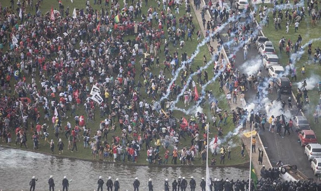 ONDE HÁ VIOLÊNCIA NÃO HÁ LIBERDADE... O pensador grego Sócrates afirmava que nenhum governo injusto deve ser obedecido. A SEDE DOS PODERES EM BRASÍLIA FOI CERCADA POR GRADES... NESSE 24 DE MAIO DE 2017. SEPARANDO DO POVO AQUELES QUE DEVERIAM GOVERNAR PARA O POVO E PELO POVO... MAS QUE ESTÃO GOVERNANDO APENAS PARA SI E PARA CORRUPÇÃO...VIVE-SE UM ESTADO DE GUERRA...E A CULPA É DE TODOS QUE SE VENDERAM PARA O SISTEMA ECONÔMICO FINANCIADOR DE CAMPANHAS PELO CAIXA 2... E A VIOLÊNCIA É FERRAMENTA QUE SÓ PODE SER USADA POR POUCO TEMPO... PORQUE DEPOIS DELA PODE VIR UMA GUERRA CIVIL... UMA COISA É CERTA... O POVO É O PODER... E QUEM DUVIDAR PAGARÁ CARO... NÃO SE ESQUEÇAM OS QUE SE APROPRIARAM DO PODER E DO PATRIMÔNIO DO POVO E QUE QUEREM DESTRUIR O PATRIMÔNIO SOCIAL DOS TRABALHADORES...QUE ATÉ OS MILITARES SÃO FILHOS DE TRABALHADORES...SÃO GENTE DO POVO... SÃO TAMBÉM POVO... BASTAM QUE SE LEMBREM DISSO...NO MEIO DA VIOLÊNCIA...PARA VIRAR OS CANOS DAS ARMAS E AS BOMBAS PARA OS PALÁCIOS E PARLAMENTOS QUE COMO JUDAS... VENDERAM A REPÚBLICA E O ESTADO BRASILEIRO PARA EMPRESÁRIOS SANGUESSUGAS CAPAZES DE MATAR A PRÓPRIA MÃE EM NOME DA RIQUEZA E DO LUCRO ESPÚRIO...