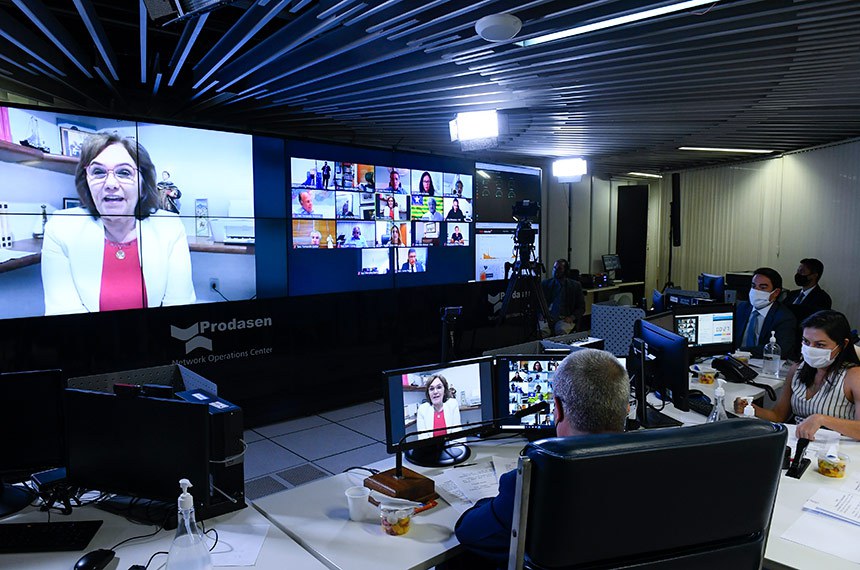 Na sessão de quarta, senadores como Zenaide Maia (no telão) pediram agilidade na votação de projeto do Fundeb