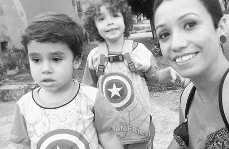 Jamile com os filhos João e Pedro, que frequentam uma escola regular da rede municipal de ensino.