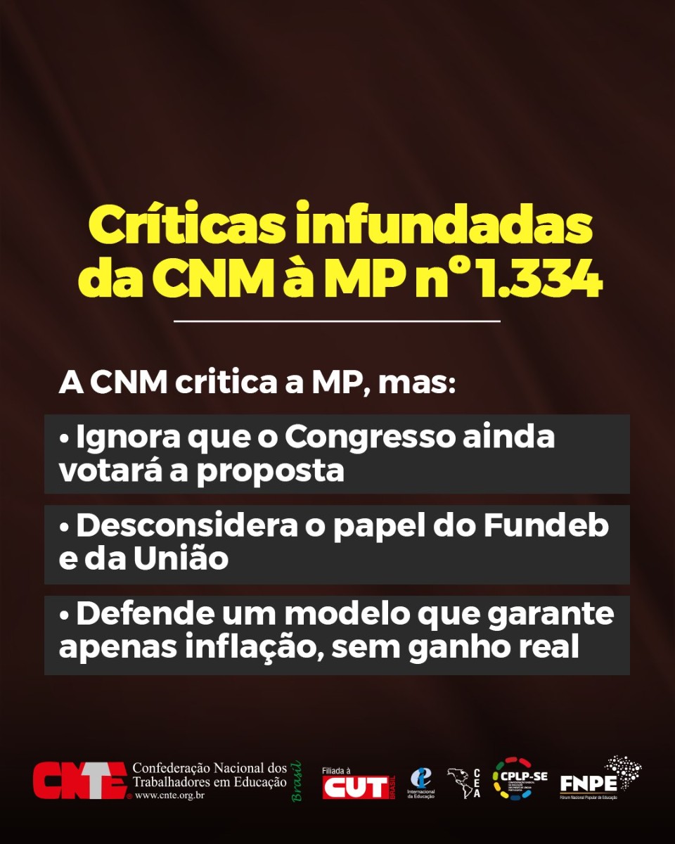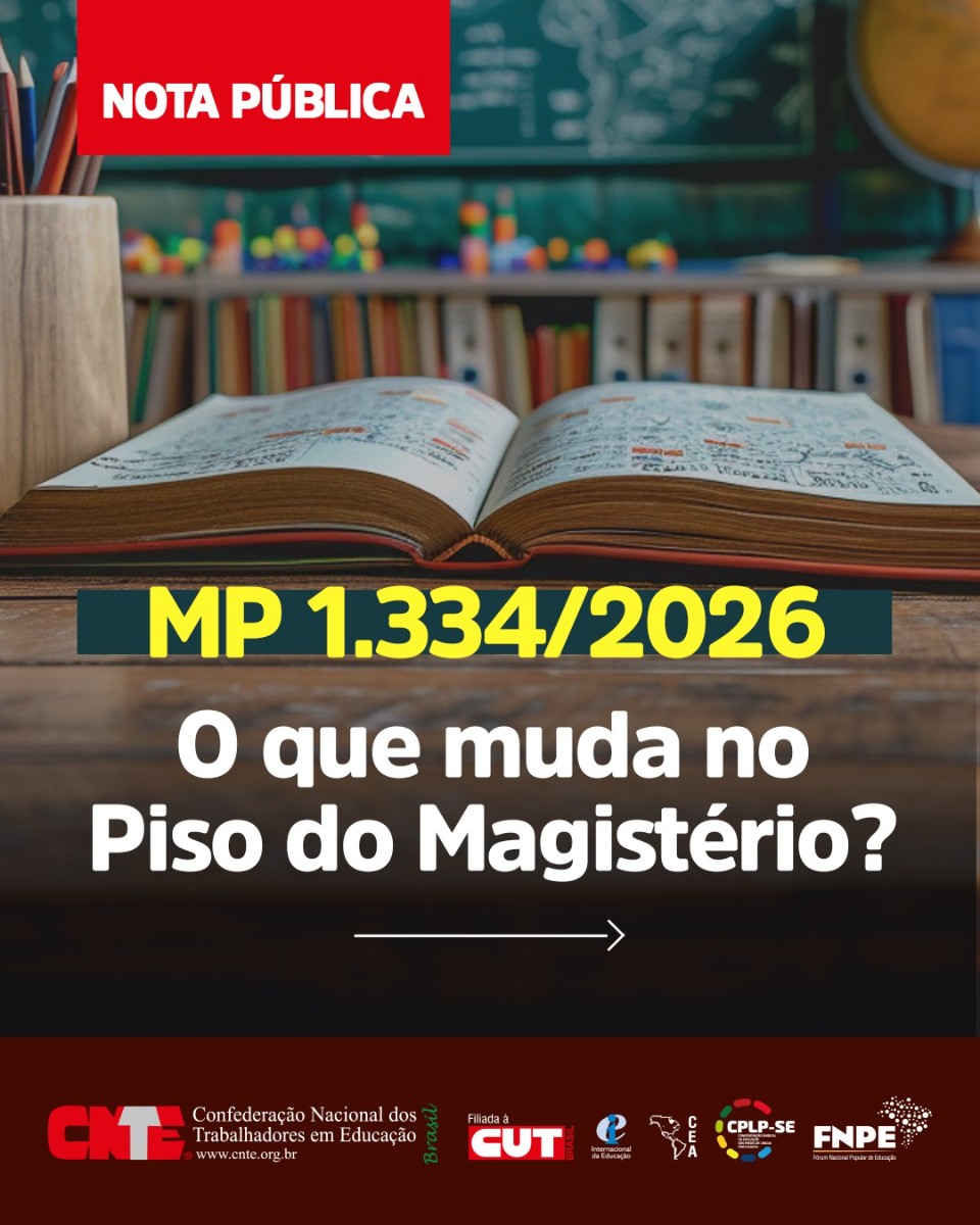 A MP nº 1.334/2026 cria um novo critério para o reajuste do Piso do Magistério, garantindo reposição da inflação e ganho real, com mais segurança jurídica e financeira. A CNTE defende ajustes na regra, fortalecimento do FUNDEB, valorização das carreiras e segue protagonizando a luta pela valorização dos profissionais da educação.