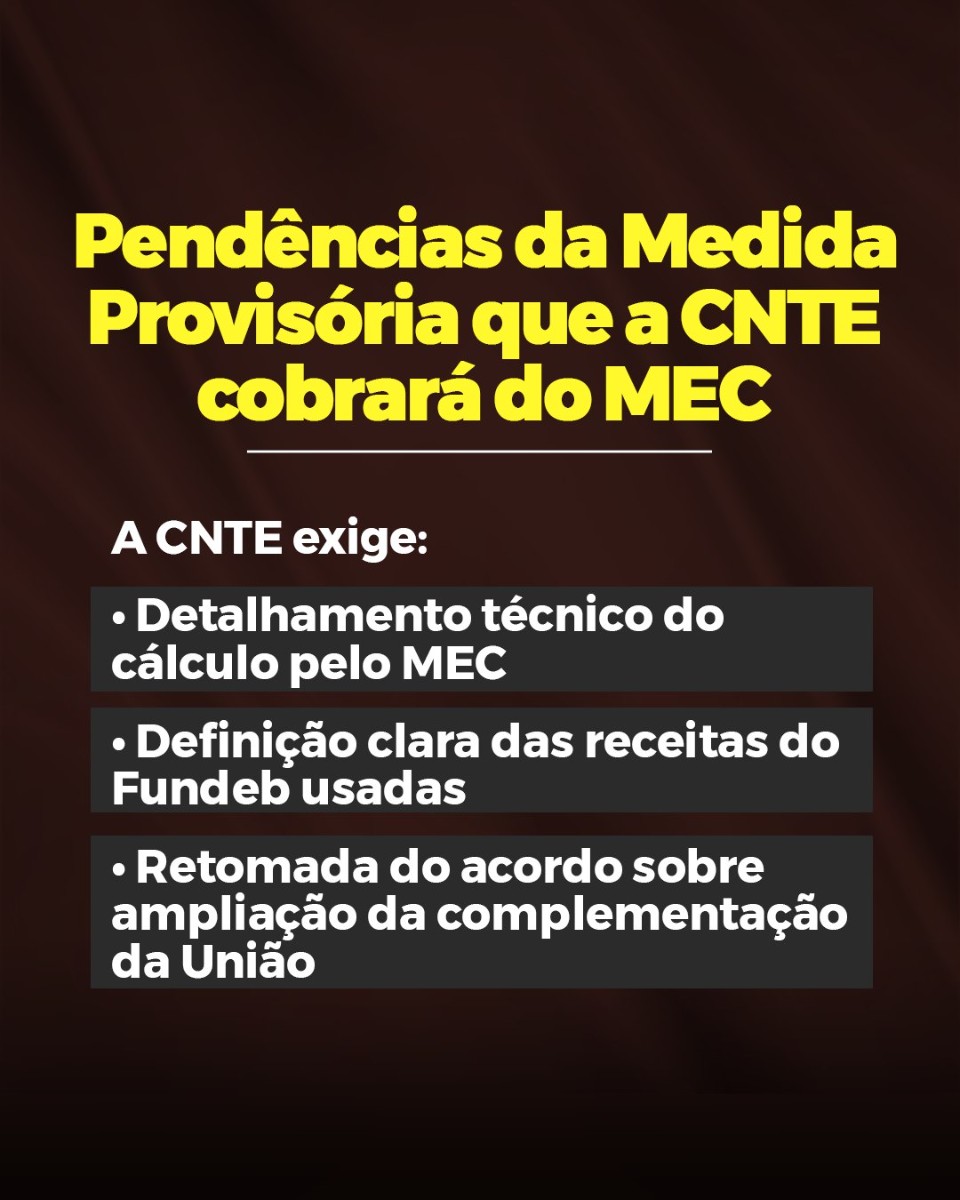 Diante da tramitação da Medida Provisória, o CPERS atuará de forma articulada com a CNTE para pressionar parlamentares e barrar qualquer tentativa de retrocesso, descaracterização ou esvaziamento do texto. A entidade reforça que a valorização da educação pública não é favor de governo, é direito da categoria e dever do Estado.