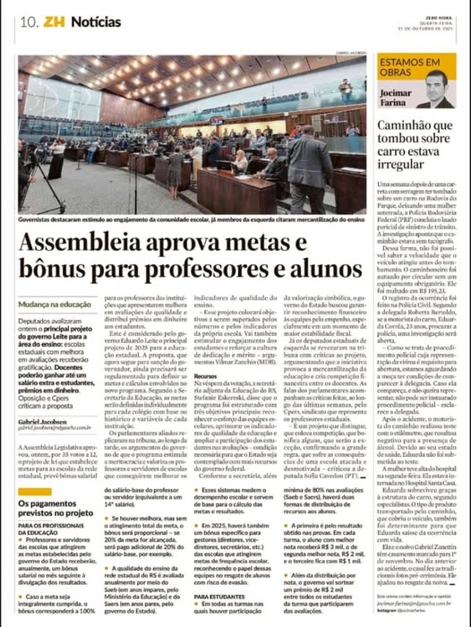 Este é considerado pelo governo Eduardo Leite o principal projeto de 2025 para a Educação estadual. A proposta, que agora segue para sanção do governador, ainda precisará ser regulamentada para definir as metas e cálculos envolvidos no novo programa.