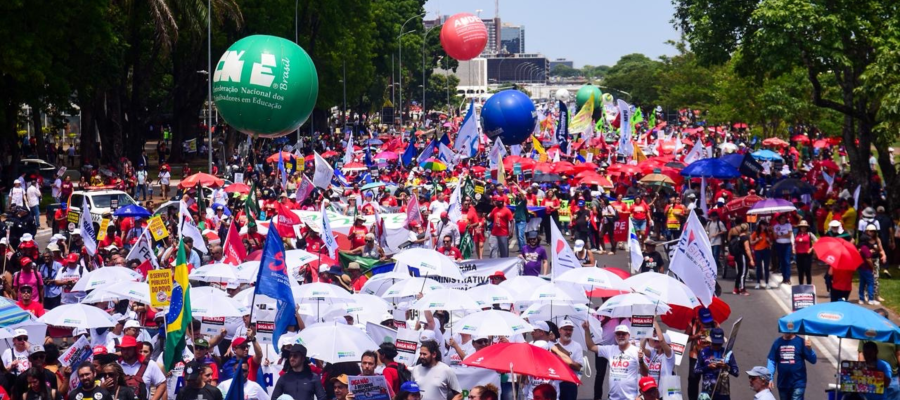 Nesta quarta-feira (29), ocorreu a Marcha Nacional do Serviço Público contra a Reforma Administrativa (PEC 38), em Brasília. A manifestação foi convocada pela CUT, centrais sindicais, confederações, entre elas a CNTE, e federações de trabalhadoras(es), com apoio das frentes Brasil Popular e Povo Sem Medo. O ato reuniu milhares de servidoras(es) públicas(os) de diversas categorias na Esplanada dos Ministérios, em defesa do Estado brasileiro e da valorização do serviço público.