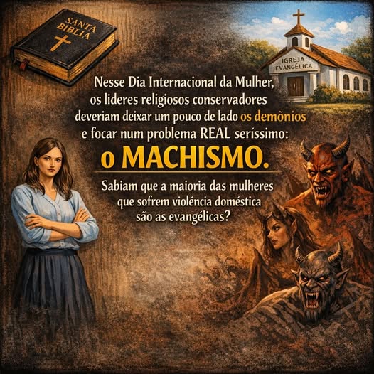 Numa data como o Dia Internacional da Mulher, talvez fosse o momento das lideranças cristãs evangélicas olharem para dentro das próprias estruturas que defendem. Isso porque existe uma contradição brutal sendo convenientemente ignorada: enquanto se fala obsessivamente sobre “demônios”, “batalhas espirituais”, “ataques do mal”, um problema real, concreto e devastador continua sendo naturalizado dentro dos ambientes religiosos - a violência contra as mulheres.
