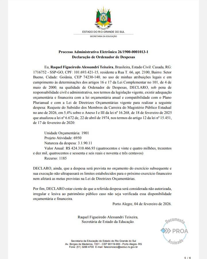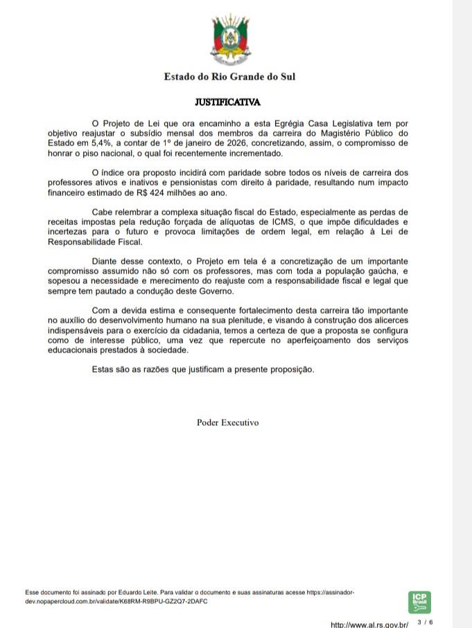 O parecer jurídico do CPERS sobre o Projeto de Lei nº 38/2026 desmonta o discurso do governo Eduardo Leite (PSD) de que o reajuste do Piso do Magistério representa valorização da educação.
