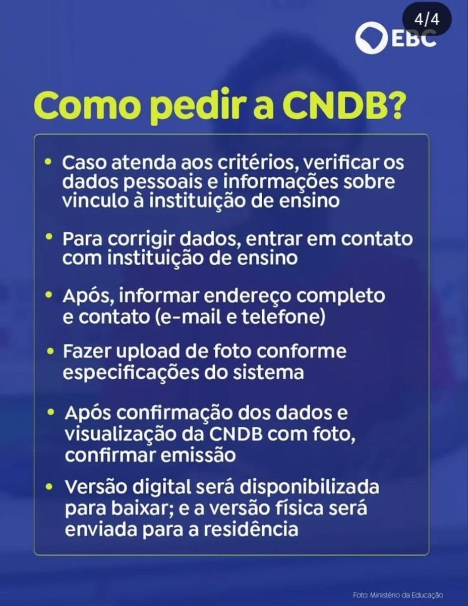 Art. 3º A CNDB será expedida mediante solicitação do requerente na forma prevista em ato do Ministro de Estado da Educação.