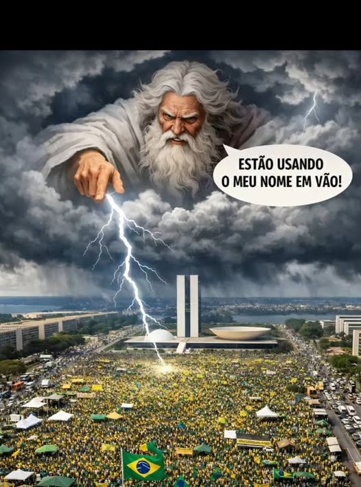 Pouco antes da descarga elétrica, Michelle Bolsonaro havia publicado essa mensagem religiosa nas redes sociais: "É um evento pacífico, ordeiro, conduzido por Deus".