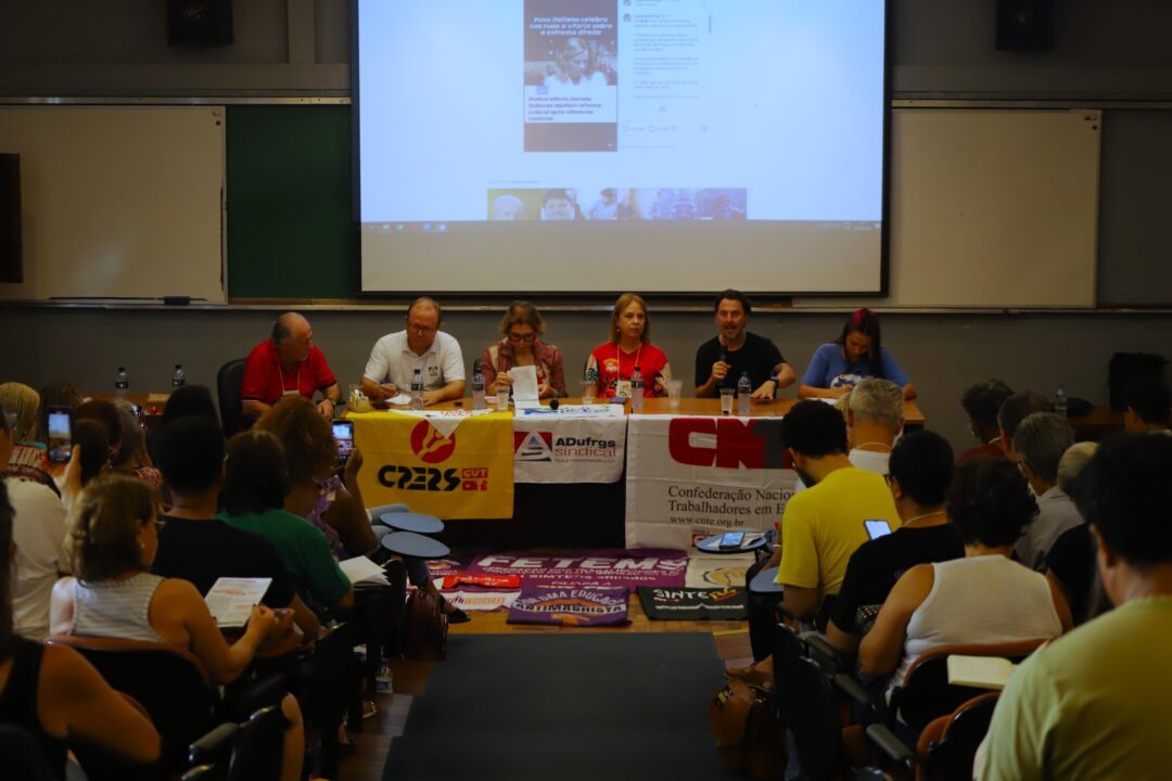 O debate promovido pelo CPERS e ADUFRGS integra a programação da 1ª Conferência Internacional Antifascista, que ocorre desde a quinta-feira (26) até o domingo (29) em Porto Alegre, com foco no enfrentamento ao avanço global da extrema-direita e à escalada autoritária que ameaça direitos e a democracia.