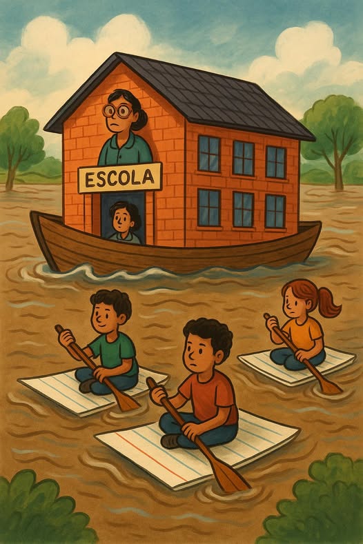 Afinal, o que adianta formar professores se as salas de aula desabam com a próxima tempestade? O futuro da educação brasileira está, literalmente, embaixo d’água.