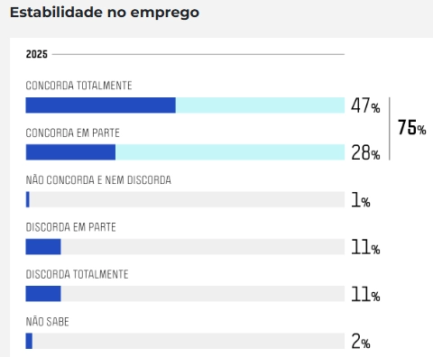 Pesquisa inédita do Instituto Datafolha revela que 75% dos brasileiros apoiam a estabilidade dos servidores públicos no Brasil. Estudo, divulgado em 28 de agosto último, foi encomendado pelo "Movimento Pessoas à Frente", "composto por pessoas chave de diferentes setores, entre especialistas, parlamentares, sindicatos, Governo Federal, Governos Estaduais, Judiciário, Órgãos de Controle, Advocacia Pública e organizações do Terceiro Setor."