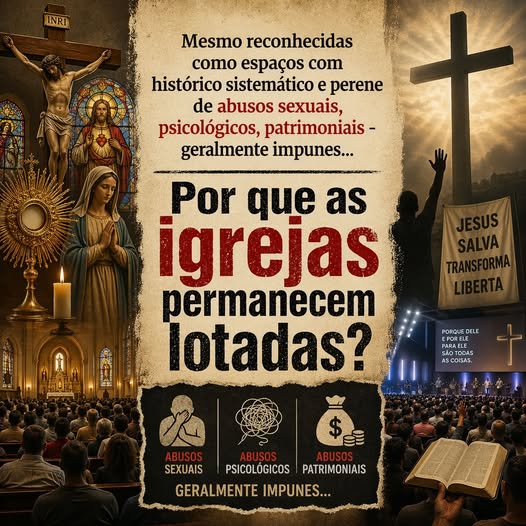 Quando uma liderança se apresenta como mediadora do divino, ela se desloca do campo do debate para o campo da obediência. Não é mais uma opinião, é somente “verdade revelada”. Questionar deixa de ser um ato racional e passa a ser um risco moral. É assim que instituições como a ICAR se blindaram ao longo da história, mesmo atravessando horrores documentados como o abuso sexual clerical. O mecanismo não desapareceu, ele foi deslocado do que realmente deveria ser inadmissível, pra defesa irrestrita do clero.