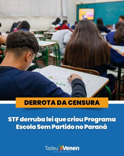 "O Supremo decidiu por unanimidade: a lei municipal que criou o “Escola sem Partido” em Santa Cruz de Monte Castelo, Paraná, é inconstitucional.