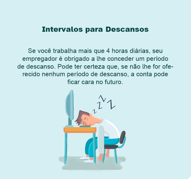 É impossível trabalhar por horas sem ter nenhum tipo de intervalo para descanso e alimentação. Por isso a legislação Trabalhista não permite o trabalho por mais de 4 horas sem pausas.