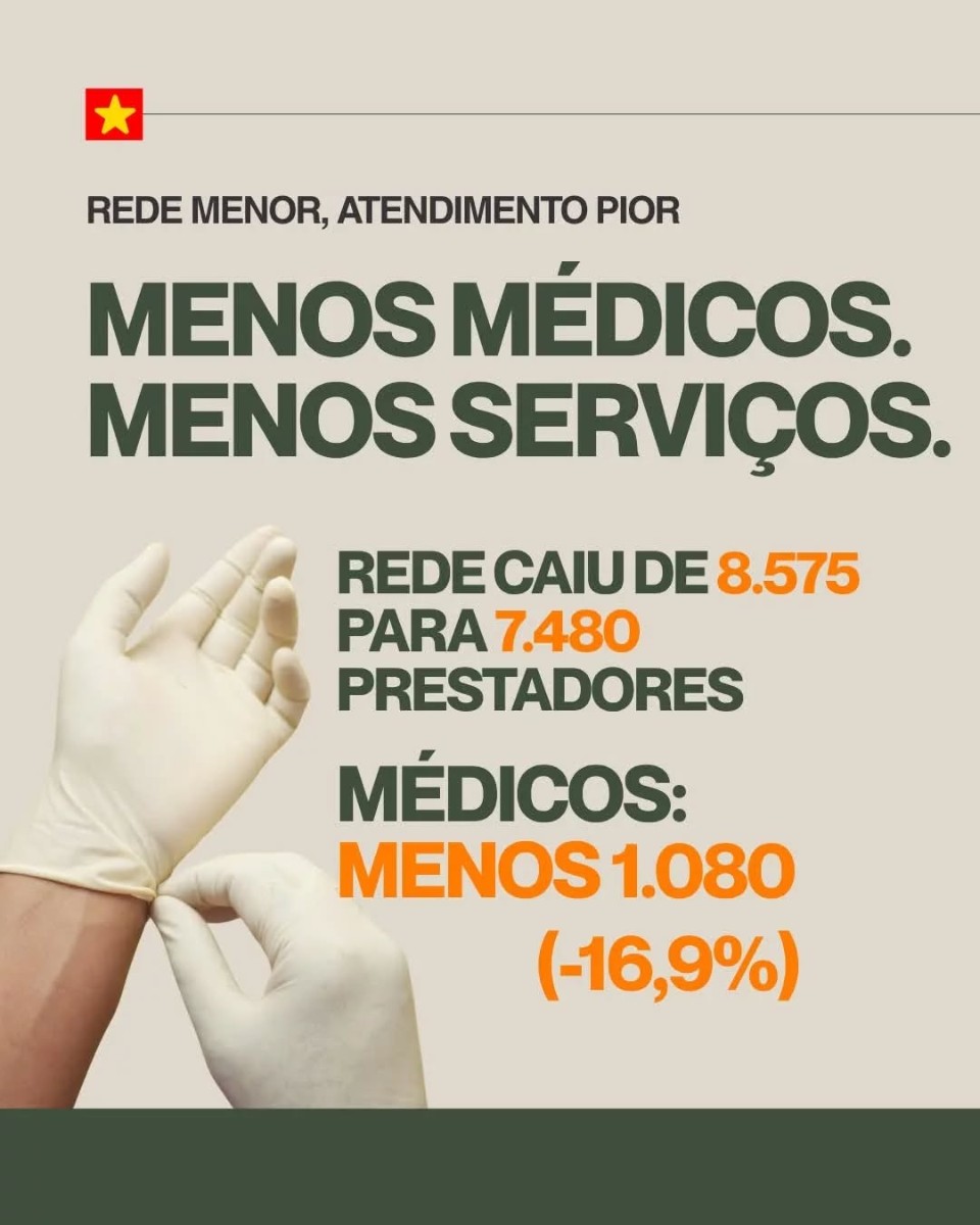 Conforme os Relatórios de Gestão, o número de usuários caiu de 975.715 em 2022 para 857.934 em 2024, uma redução de 12,1%. Essa debandada sobrecarrega ainda mais o SUS, já fragilizado por cortes e fechamento de serviços na Região Metropolitana.