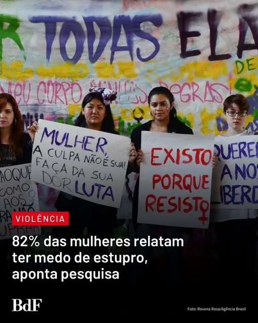 Em 2020, 78% das mulheres ouvidas pelos pesquisadores disseram ter “muito medo de ser vítimas de um estupro”. Esse percentual cresceu para 80% em 2022 e chegou a 82%, segundo os dados de 2025.