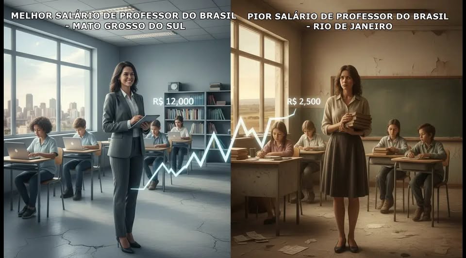 Diferença salarial entre estados chama atenção: professores ganham mais de R$ 12 mil em algumas regiões, enquanto outros enfrentam dificuldades para atingir o piso nacional