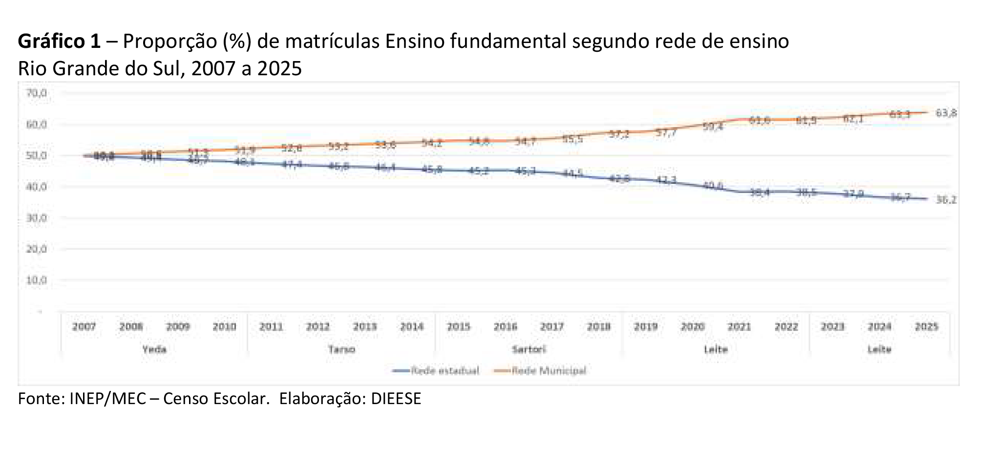 Os dados apresentados pelo DIEESE deixam claro que a municipalização, da forma como vem sendo implementada no Rio Grande do Sul, é uma decisão política dos últimos governos. O CPERS reafirma seu posicionamento contrário à municipalização das escolas estaduais e denuncia essa política como parte de um projeto de desmonte da educação pública no estado.