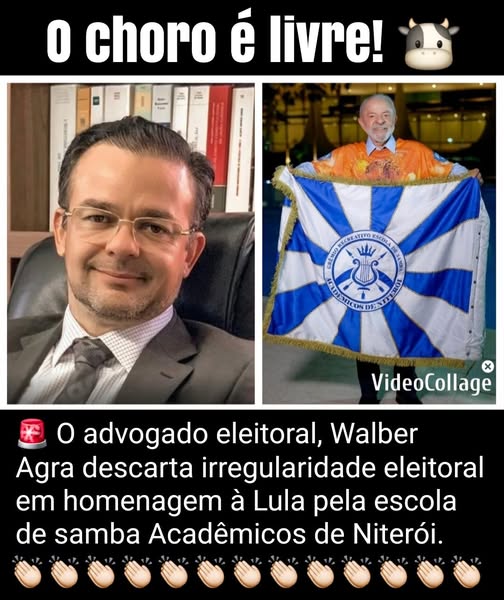 Walber Agra descarta irregularidade eleitoral em homenagem a Lula em desfile ○ advogado eleitoral Walber Agra, autor da Ação de Investigação Judicial Eleitoral (AIJE) que resultou na inelegibilidade do ex-presidente Jair Bolsonaro no Tribunal Superior Eleitoral (TSE), avaliou que a homenagem feita pela Acadêmicos de Niterói não apresenta elementos suficientes para responsabilizar ○ presidente Luiz lnácio Lula da Silva na Justiça Eleitoral.