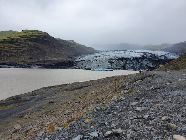 | Geleira na Islândia na encosta de um vulcão - país de gelo e fogo |