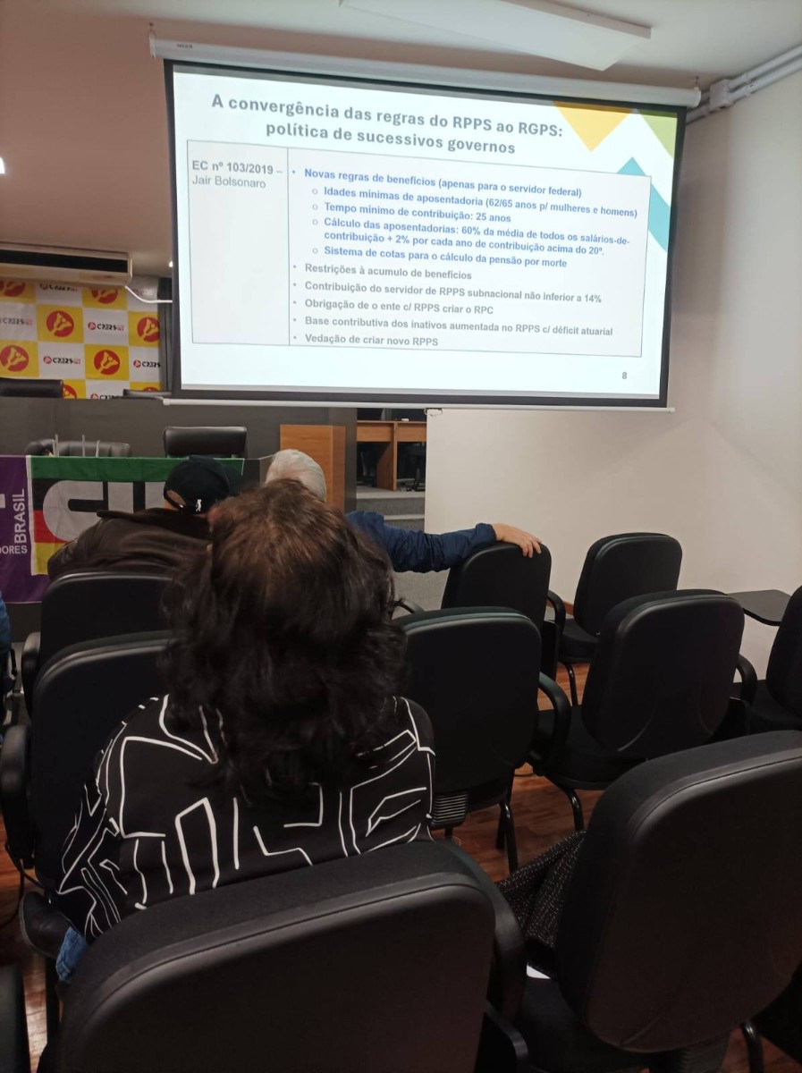 A primeira apresentação, “ O FUTURO DA PREVIDÊNCIA E OS DESAFIOS DAS(OS) SERVIDORAS(ES) PÚBLICAS(OS) APOSENTADAS(OS)”, contou com a presença de Ricardo Berzoini, ex-ministro do Trabalho, das Comunicações, da Previdência Social nos governos Lula e Dilma.
