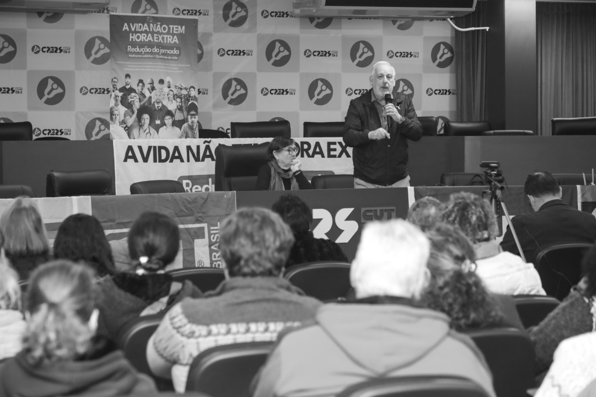 No dia 15/07/25, a Central Única dos Trabalhadores (CUT/RS) realizou o Encontro de Aposentados no Salão de Atos Thereza Noronha, localizado na sede do CPERS, em Porto Alegre. Reuniu educadores e demais categorias para discutir a conjuntura nacional da Previdência e o empobrecimento dos que contribuíram por décadas com o desenvolvimento do país.